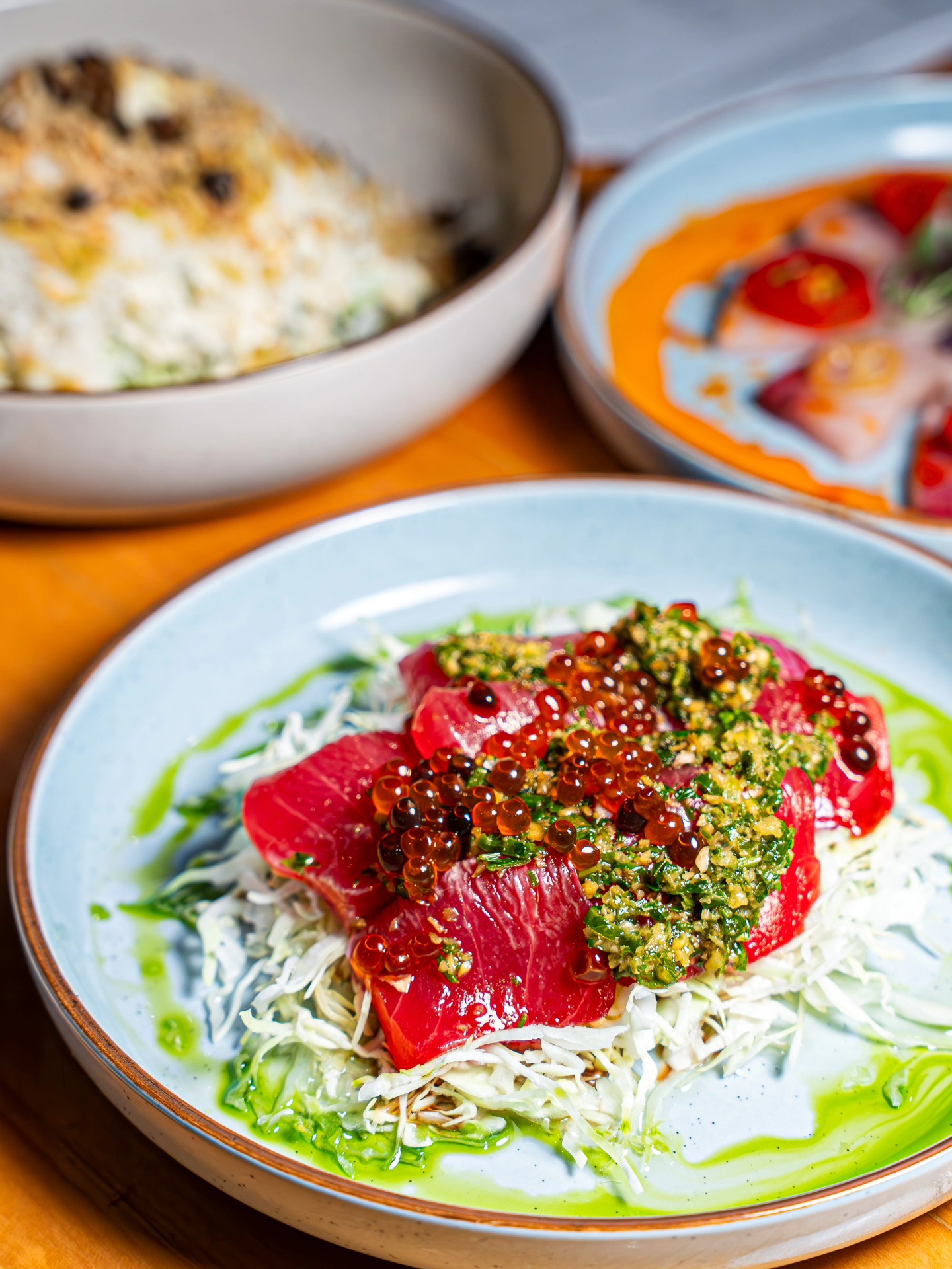 Our menu highlights seafood forward favorites like Fried Moi, Shrimp Toast, Ahi Steak, and Maguro Cabbage, crafted to let the natural flavors shine through refined techniques.